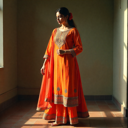 Muslim Silk Kachi Work Tops One Color Ready Made Two Piece For Girls