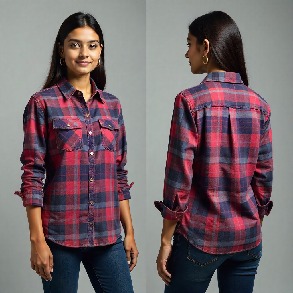 100% Cotton Multi Check Long Sleevee Shirt for Women