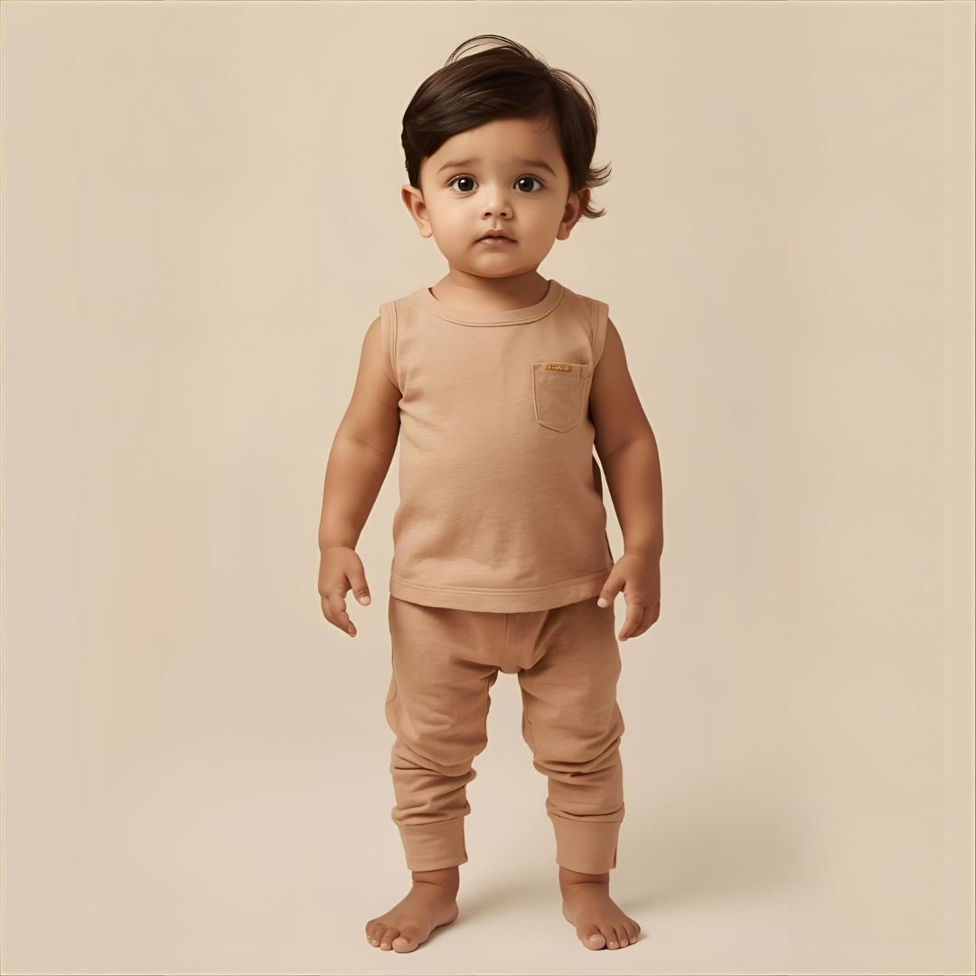Product details of a baby boy summer sleeveless soft cotton t-shirt and pant set
